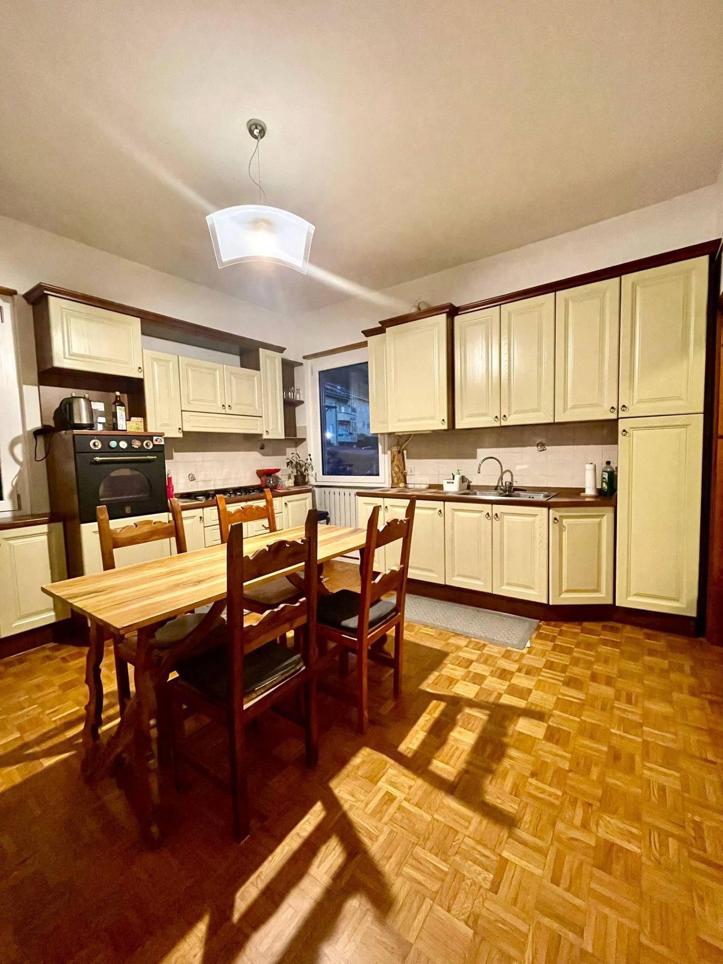 All'ingresso accoglie un ampia cucina completamente fornita resa particolarmente luminosa da finestre con affaccio al monte.